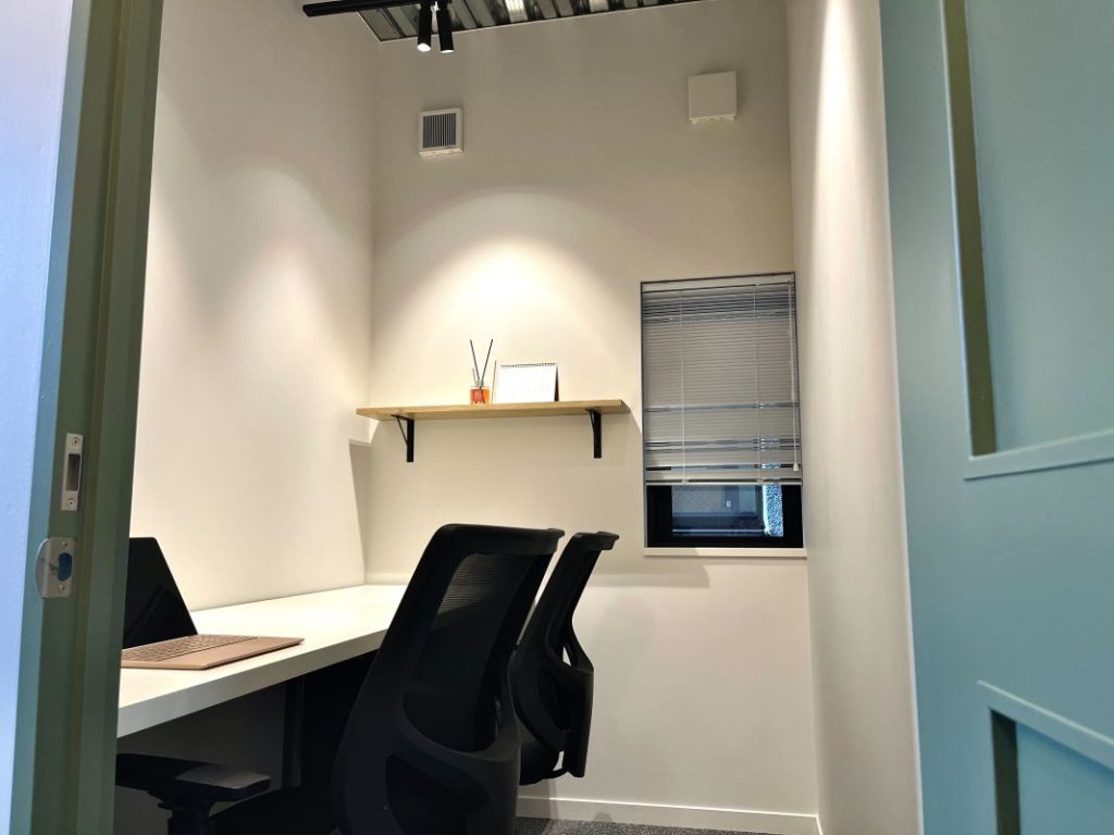 集中とリラックスのバランスがとれた空間は、2人での打ち合わせや共同作業にも適しており、少人数チームの拠点としてまさに「ちょうどいい」お部屋でございます。