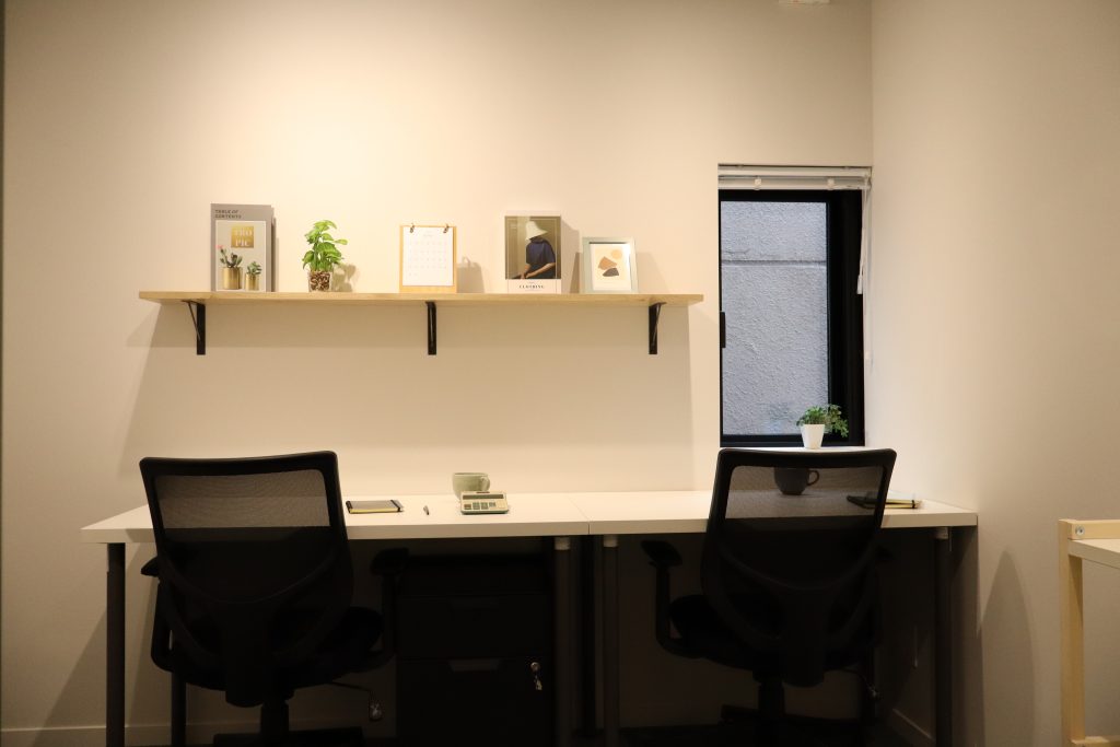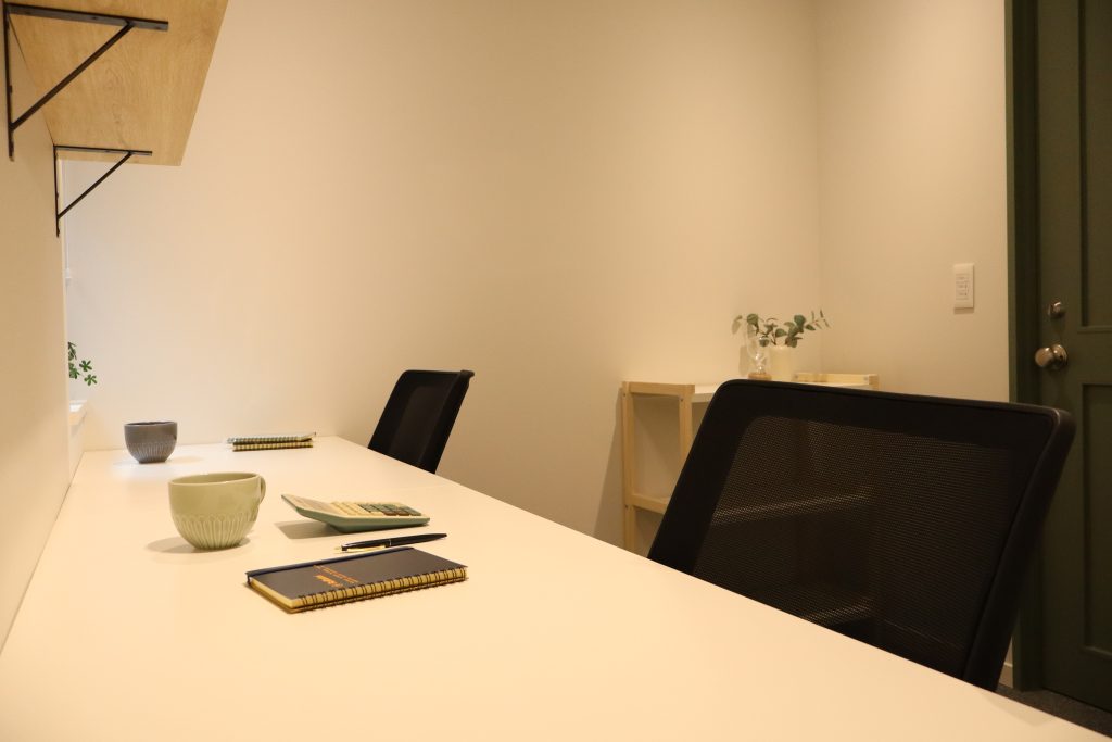 この個室は、2名用のお部屋の中でいちばん広く設計されており、チェアの間にもしっかりスペースがあります。その為、お互いの作業に干渉せず、のびのびとお過ごしいただけます。