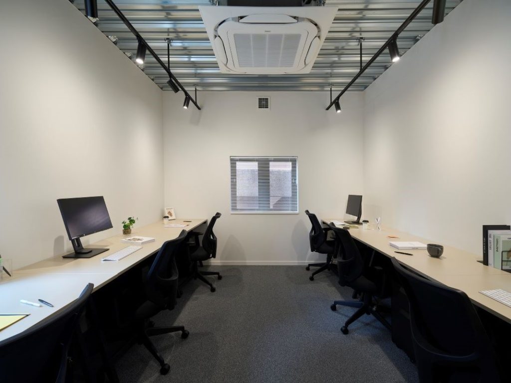 また、個別空調も完備しており、温度や風量をお部屋ごとに自由に設定可能。季節や人数、作業内容に合わせて細やかな調整ができるため、常に自分たちにとって心地よい環境をつくることができます。