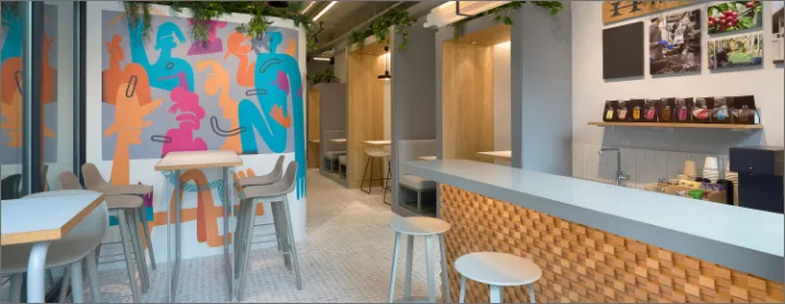- オフィス内で、横浜山下町に自社ロースタリーを構える「堀口珈琲」のスペシャルティコーヒーをお楽しみいただけます。特別な場所で、香り高い一杯を味わう至福のひとときが、あなたのクリエイティブな思考を深めます。