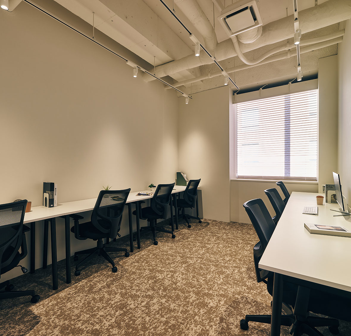 「起業をしたらまずはこのお部屋から」とも言える、まさにスタートアップルームとしてご活用いただけます。デスクやチェアなどのオフィス家具はもちろん、インターネット回線も整っておりますので、ご入居後からすぐに事業に取り掛かることができます。