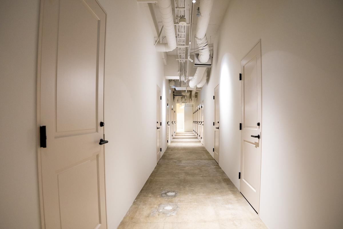 フロアの中央に1名~3名用の個室が連なる区画があり、空室部屋の中から好きな部屋を選択することが今はまだ可能です(選択肢が少なくなってまいりましたのでお早めのお問い合わせをお勧め致します)。お手洗いも各階にあり、便利なレイアウトとなっております。