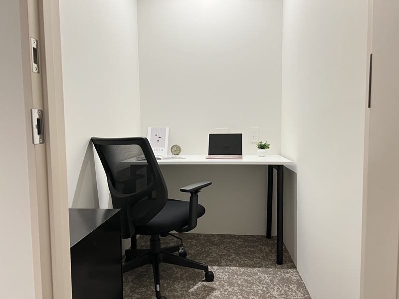 1名個室は奥行があり、天井も高いため圧迫感がないと好評です。24時間365日室内利用可能で、デスク・椅子・鍵付きワゴンが1セット完備(空調規定有り)。インターネット回線は、無線は勿論有線接続も可能です。自由度の高いBLOCKS OFFICEをぜひ体感しにお越しください。